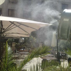 Nuestros Sistemas de Climatización son sistemas de agua nebulizada que se caracterizan por su versatilidad. Son una fantástica opción para crear microclimas que favorezcan el confort y el bienestar en zonas interiores y exteriores de todo tipo de recintos, siendo especialmente idóneos para negocios hoteleros y de restauración. Los Sistemas de Climatización BRUMIZONE son innovadores, disponen de una tecnología capaz de refrescar cualquier espacio cuando la temperatura es elevada y el sol esta en su punto mas alto.