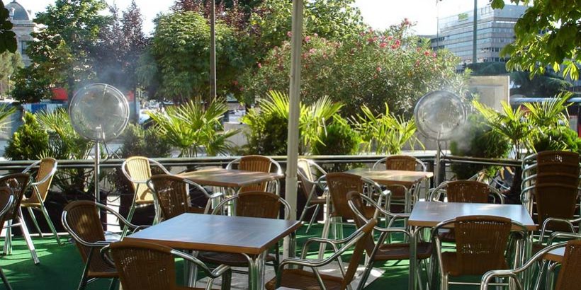 La famosa cadena de restaurantes americanos Hard Rock Cafe, ha confiado la climatización de su terraza en pleno corazón de Madrid a Brumizone Microclimas con la instalación de un equipo compuesto por 5 ventiladores nebulizadores.