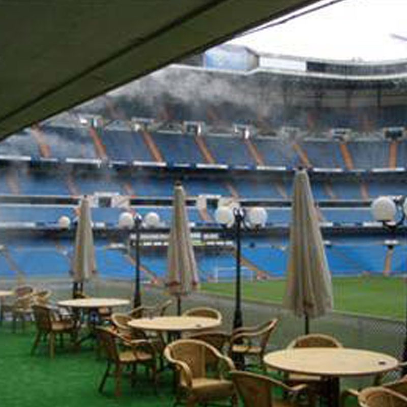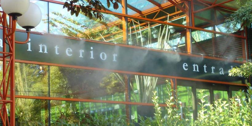La nebulización en espacios comerciales como centros de jardinería permite reducir la temperatura ambiente de forma homogénea, sin mojar ni alterar la estética del entorno, lo que la convierte en una solución eficaz y discreta. En zonas ajardinadas, pabellones exteriores o áreas de exposición, esta tecnología permite disfrutar del recorrido y la compra incluso en condiciones de calor extremo.